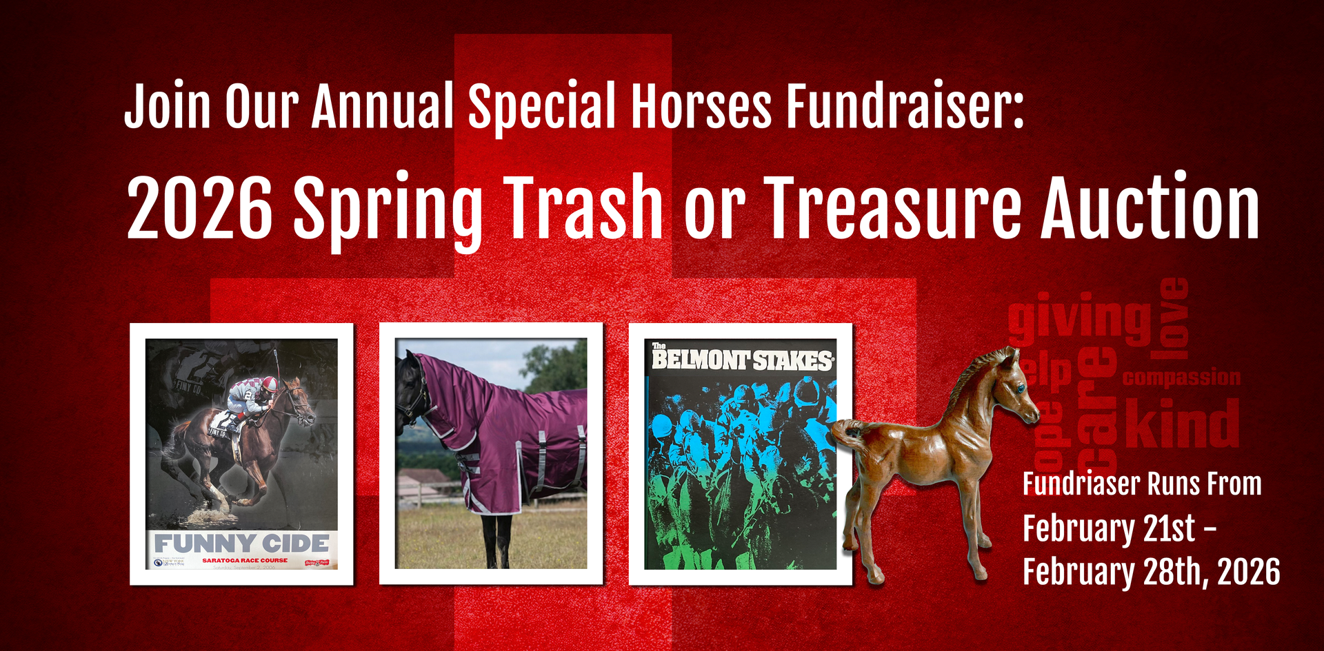 Spring into the fun of our online auctions and help several wonderful equine rescue groups as well! The auction will run from Saturday, February 21st at 10 AM through Saturday, February 28th at 10 PM CST. There will be over 50 items, ranging from original artwork to racing and equine memorabilia, vintage collectibles, and jewelry. We will once again offer the Eclectic Equine Mystery Box for adults as well as the highly coveted “Ted’s Mom’s Fudge.” There are many bargains to be had, there’s something for everyone, and all proceeds support equines in need!